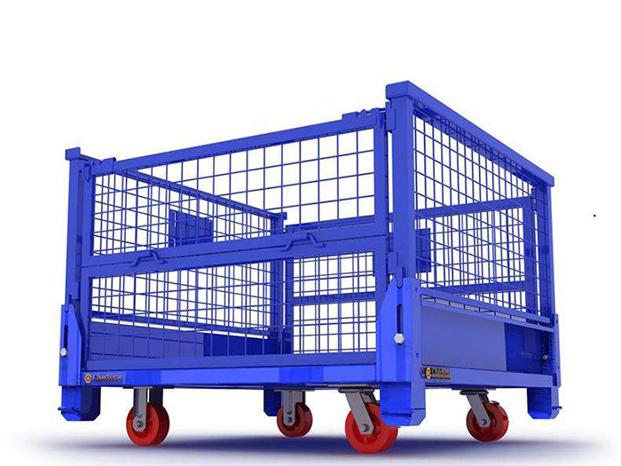 工业仓储笼是仓储运输中不可缺少的设备,不但在仓储中被广泛应用,在运输中也受到很多客户的青睐。工业仓储笼坚固耐用、运输便捷、能重复使用,能有效降低仓储企业的人力消耗及包装成本。工业仓储笼常用的有三种:一种是安装脚轮手推移动工业仓储笼用来周转用的,二种是带脚仓储笼可以堆起可以上架,三种是带轮带脚的仓储笼可以两用。 随着现代工业的迅速发展,对仓储笼的功能要求也越来越高。将工业仓储笼底部安装轮子,仓储笼之间便可连接,且方便移动,移动时声音小,折叠后可堆垛、可靠安全而且保护产品免磕碰,工厂内部周转极其方便。经过改进的脚轮手推移动工业仓储笼可在车间方便快捷周转,更可在笼子上装上牵引,前面附牵引机械,使笼子之间连接起来如一列小火车自由穿梭于仓库厂房之间。 脚轮手推移动工业仓储笼和可折叠敞口式仓储笼蝴蝶笼都是采用Q195高线作为原材料,一般丝径是4.8mm、 5mm、 6mm、6.4mm。网片焊接的网目间距一般为50*100,100*100,50*50、50*25、25x*25。仓储笼底部采用U型槽钢焊接而成,U型槽钢是冷轧带钢轧机轧制而成,底部四脚采用冲压件冲压成型,一般成型片为2片冲压件,然后2片冲压件焊接而成。 仓储笼常用规格是:1200*1000或1000*800的,其它规格可以定做,仓储笼的脚高一般为100,也有120mm高度的,在制作成网片后,可采用镀锌或喷塑进行表面处理(仓储笼大多数采用镀锌处理),表面处理完毕后就可以进行组装,最后制作成成品。仓储笼的优点包括但不限于以下几点: 1、采用国际标准,可与集装箱配套使用,有效提高空间利用率,配合叉车、地牛、升降机、吊车等设备可进行高效作业。 2、可互相堆叠四层高,实现立体化存储,环保处理,卫生免疫、周转、存放回收均不污染环境。 3、折叠式结构,回收成本低,是实木木箱的替代产品。 4、规格统一,容量固定,存放货物一目了然,易于库存清点。 5、底部可安装轮子,仓储笼之间可连接,且方便移动,移动时声音小,折叠后可堆垛、可靠安全而且保护产品免磕碰,工厂内部周转极其方便。 6、采用优质钢材经冷轧硬化焊接而成,坚固耐用强度高装载能力大,表面镀锌美观抗氧化使用寿命长,运输便捷重复使用能有效降低仓储企业的人力消耗及包装成本。
